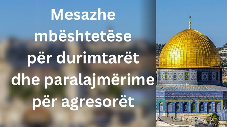 Hutbe e ditës së Xhuma nga Xhamia El Aksa 17-01-1445 H 26-04-2024 D Shejh Halid Ebu Xhumua Tema Mesazhe mbështetëse për durimtarët dhe paralajmërime për agresorët Lavdërimet janë për Zotin e botëve. I Urtë në atë që vendosën në çdo kohë dhe vend, i Butë me robërit e Tij kur ata i prekin shqetësimet dhe Lexo më shumë