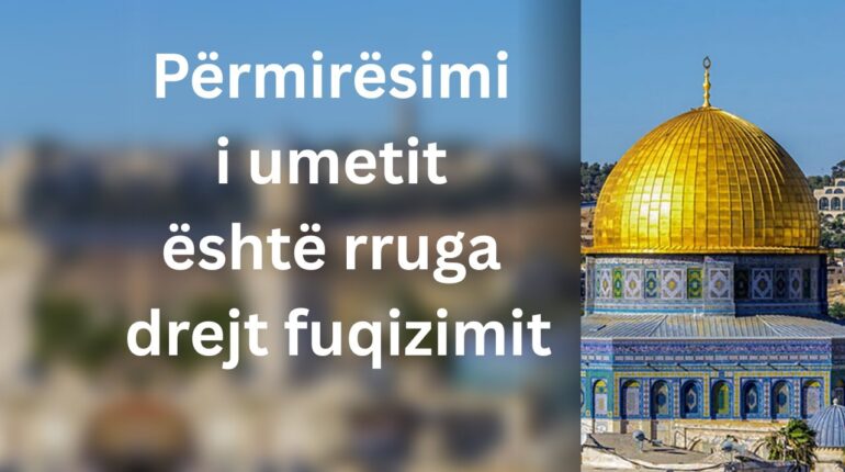 Hutbe e ditës së Xhuma nga Xhamia El Aksa 09-05-1447H 31-10-2025 D Shejh Muhamed Selim Tema Përmirësimi i umetit është rruga drejt fuqizimit Lavdërimet janë për Zotin, Ai i Cili bëri Muhamedin, paqja dhe mëshira e Zotit qoftë mbi të, vulën e të dërguarve dhe bëri umetin, popullin e tij pas tij pasardhës në tokë Lexo më shumë
