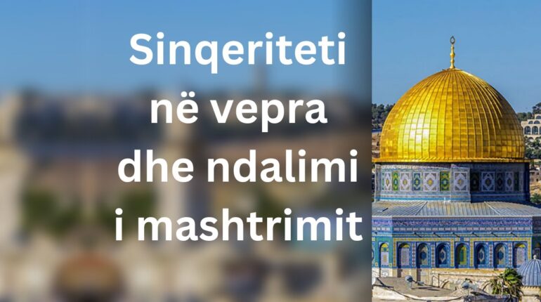 Hutbe e ditës së Xhuma nga Xhamia El Aksa 27-01-1446 H 02-08-2024 D Shejh Ikrime Sabri Tema Sinqeriteti në vepra dhe ndalimi i mashtrimit Lavdërimet janë për Zotin. Lavdërimet janë për Zotin e botëve. Lavdërimet për Zotin sa kohë nuk na e ka sjellë exhelin, afatin e fundit, derisa të kemi pranuar dhe zbatuar Islamin. Lexo më shumë